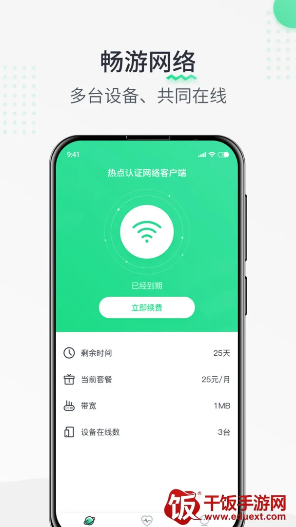 热点认证App能轻松解决你热点认证的难题。它是款超棒的无线网络管理工具。有智能网络扫描与连接功能,能快速扫描周边网络,精准测网速、分析信号强度,助你选最佳连接方案,不管啥网络都能快速接入。一键诊断与修复功能超贴心,网络有问题时能迅速找出症结并给修复建议,让网络畅通。还能随时查看详细网络参数,像网速、信号强度、连接设备数量等,全面掌握网络状态。全国热点数据库实时更新,在哪都能获取最新网络资源。在家庭能管理网络、查看连接设备、监控流量;办公可快速连企业网络并优化;公共场所能一键连数亿共享热点免费上网。使用时,打开app选深圳或西安厂区注册或登录,在厂区连FUDI开头的WiFi,返回点击一键上网就行,没套餐或到期可在我的界面订购套餐。这软件操作简单,功能强大,有它热点认证不再愁。