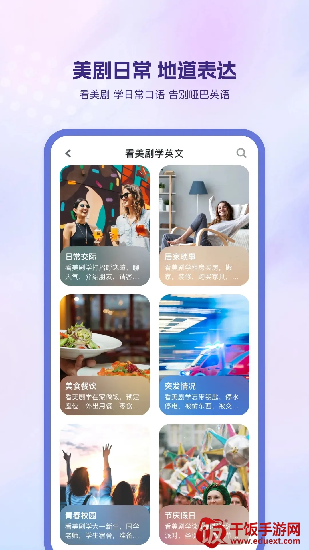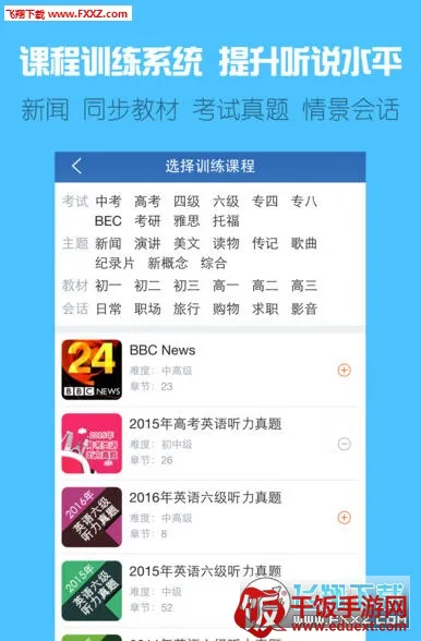 2. 多样学习方式:通过语音同步双语字幕的素材享受聆听体验;用九宫格游戏、单句听写练听力;智能实时口语评分助逐句跟读攻克开口难关;针对不同考试题型专项强化模拟训练。