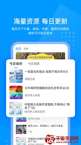 1. 海量学习资源:汇聚3000优质英语节目,语音同步双语字幕,超30万篇有声资源,涵盖听力、口语、影视、广播、音乐及各类考试等内容,满足全方位学习需求。