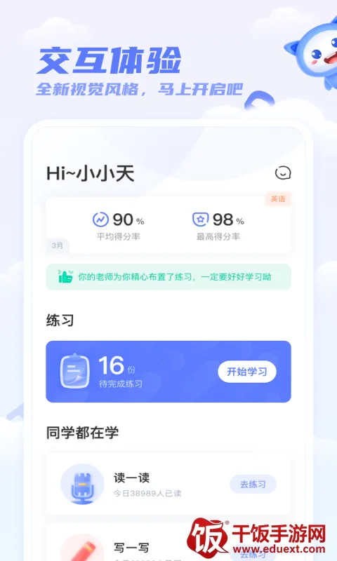 1. 智能高效学习:提供智能化英语提分方案,拥有人机交互系统,带来专业高效的教学和测评服务,能助力学生快速提高学习成绩。