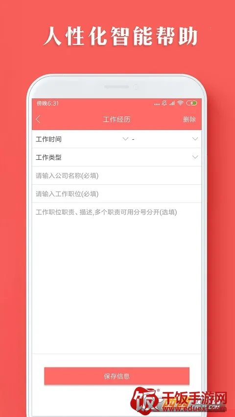 个人简历模板制作安卓版是专业的简历制作工具,采用数据加密技术保护隐私。有丰富精美模板,支持自由录入信息,一键自动排版,操作简单,能快速生成美观大方的简历,提升就业竞争力,还不断更新优化。