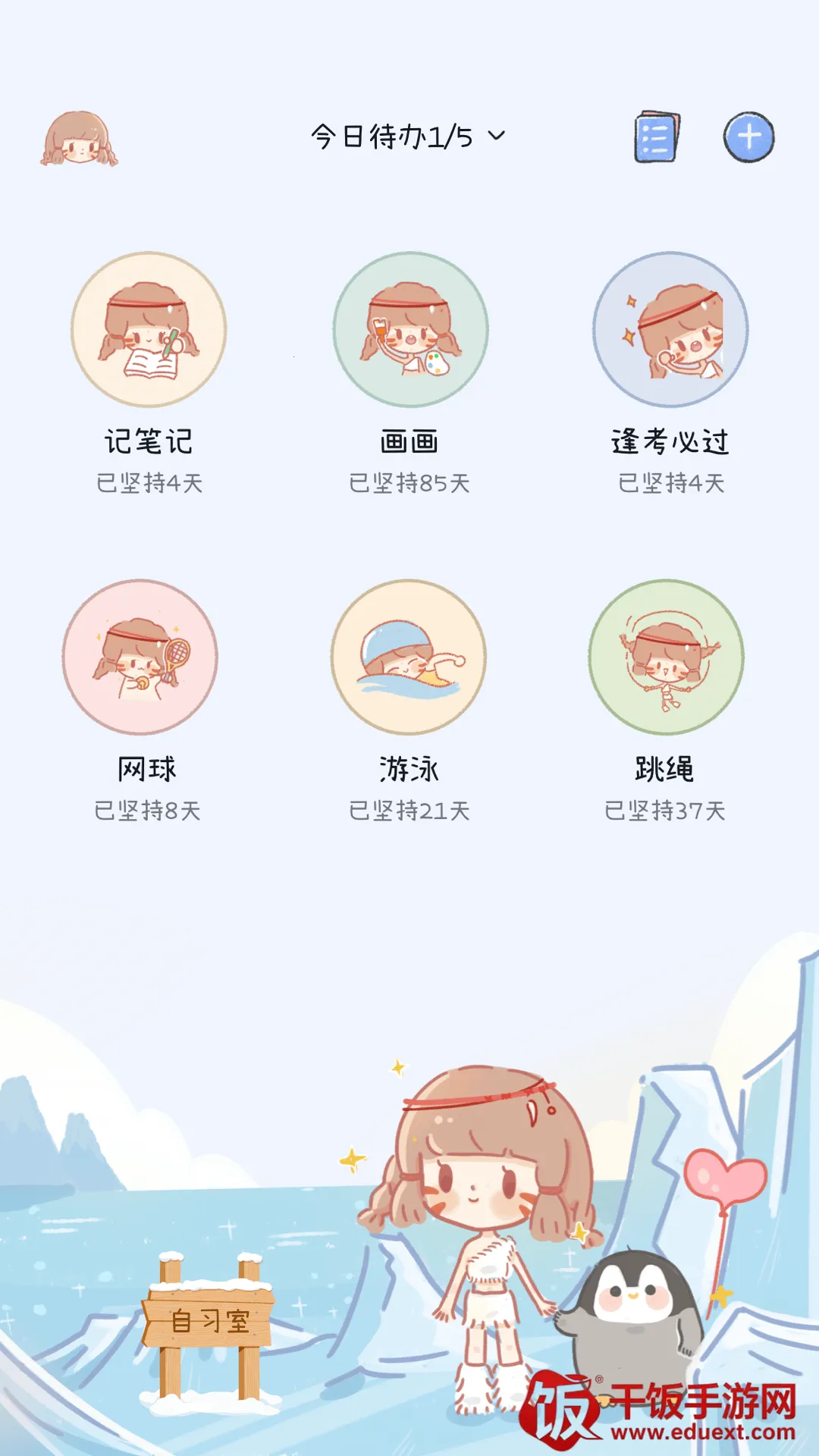 其界面简洁清爽,能让用户快速找到所需功能。多样化记录方式,除文字外还支持插入图片等,使内容更丰富。桌面小插件提醒方便查看任务状态,提升执行效率。自习形象可自定义,增加了学习趣味性。而且无广告干扰,运行流畅。在这里,用户可以自由设定习惯目标并打卡,通过云自习营造高效学习氛围,完成打卡后还能记录感想进行复盘。每次坚持打卡能收集来自世界各地的明信片,增添了打卡的乐趣和动力,是一款很不错的应用。