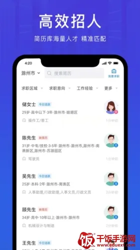e滁州招聘人才网由安徽易滁网络科技打造,专为滁州求职者定制。覆盖各行业海量职位,能与hr线上畅聊。有高效求职体验、全面职位覆盖等特色功能,还不断更新优化,助求职者找好工作,企业高效招聘。