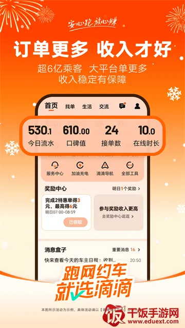 1、海量订单轻松接:智能化订单推送,告别路边扫活,从此订单接到手软。