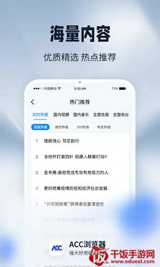 ACC浏览器是聚合型手机上网工具,整合多主流搜索引擎与多种内容类型。具备多引擎集成、多类型搜索等功能,有隐身浏览、模拟设备等特性,操作简洁,能满足多样需求,保护隐私,适用于多种场景。