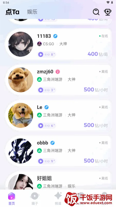 1. 丰富多样的搭子选择:能轻松找到专业电竞搭子,带你摆脱坐牢局稳上大分,也有娱乐陪玩搭子随心Pick,甜妹音搞笑男陪你边打边唠,让上分摸鱼都尽兴。还有各种其他搭子,不管是游戏搭子、聊天搭子还是兴趣同好,都能快速匹配。