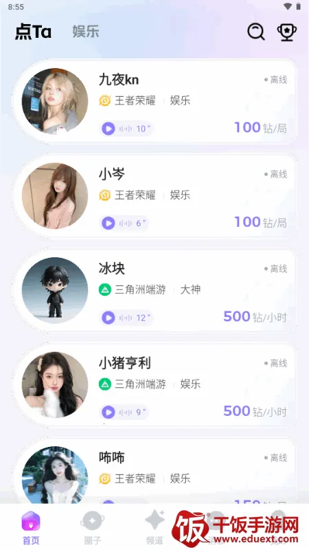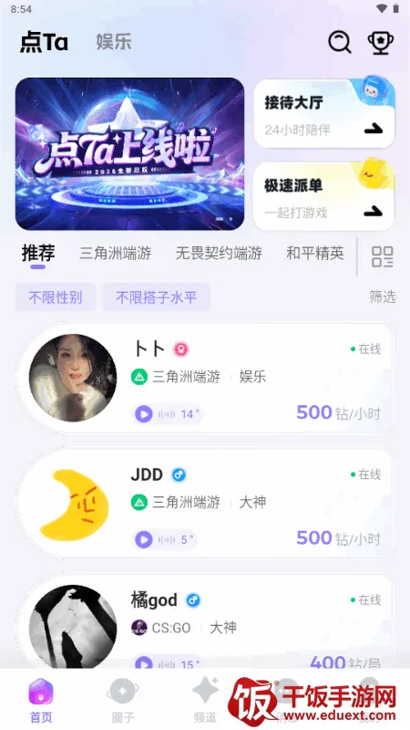 点Ta2026官方最新版本是一款功能丰富的陪练陪玩软件,为游戏玩家和社交爱好者打造。有专业电竞搭子、娱乐陪玩,覆盖多热门游戏,还有24小时Live驻唱、海量播客,多种交友方式,更新后体验更优。