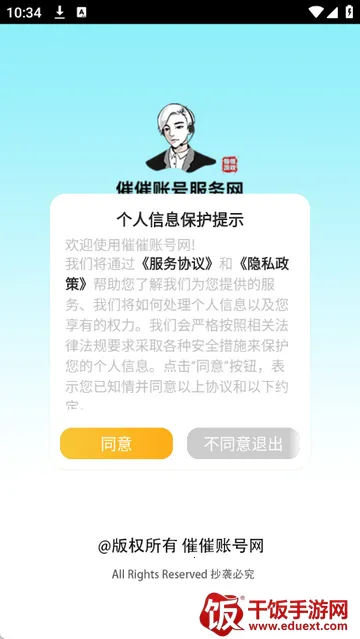 1、打开催催账号网app,点击同意隐私政策