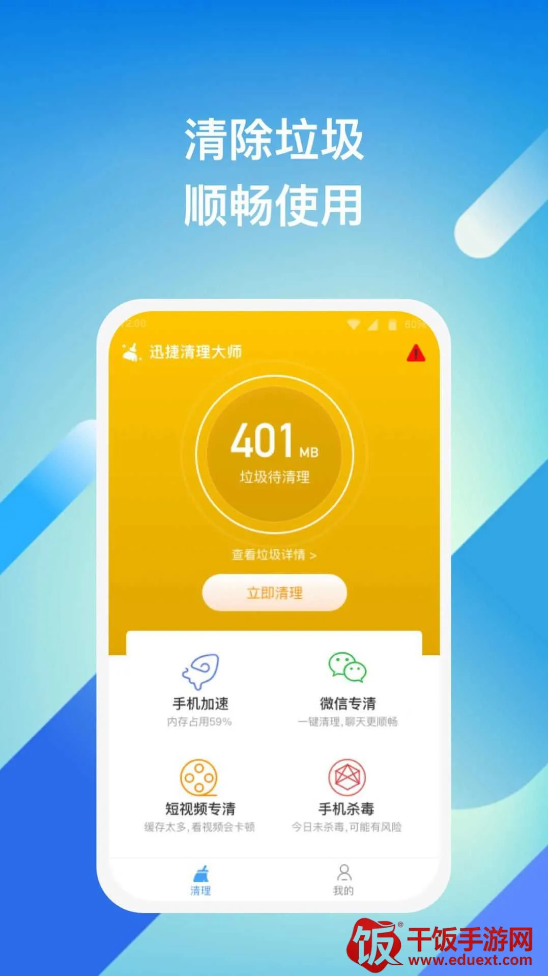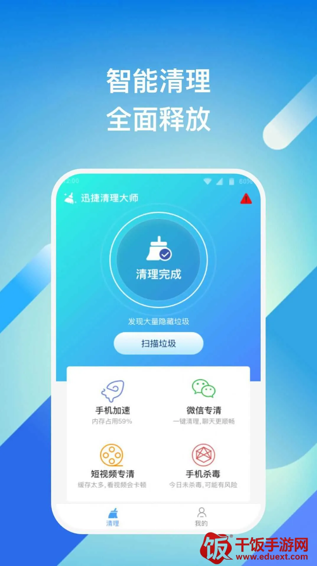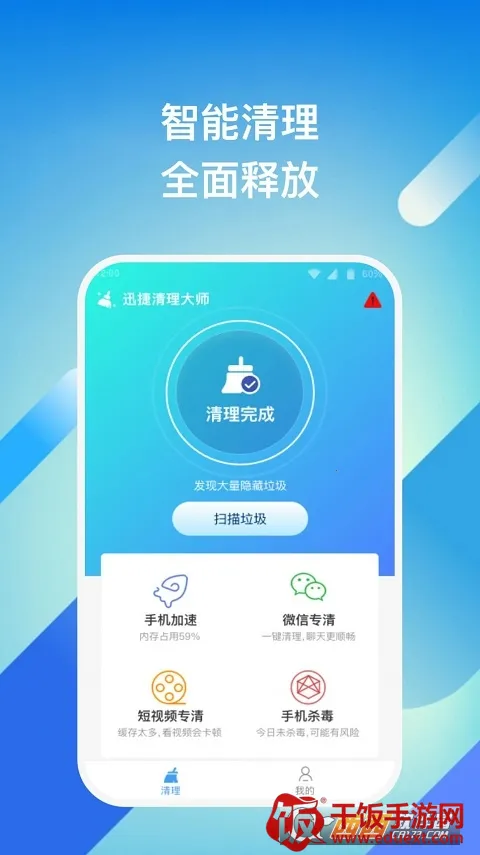 迅捷清理大师安卓版是一款强大的手机垃圾清理工具。能一键扫描清理各类垃圾文件,拦截查杀病毒,还可进行微信清理、手机加速、相册清理等。支持自动清理,可设置白名单,全方位提升手机性能,保障隐私安全。