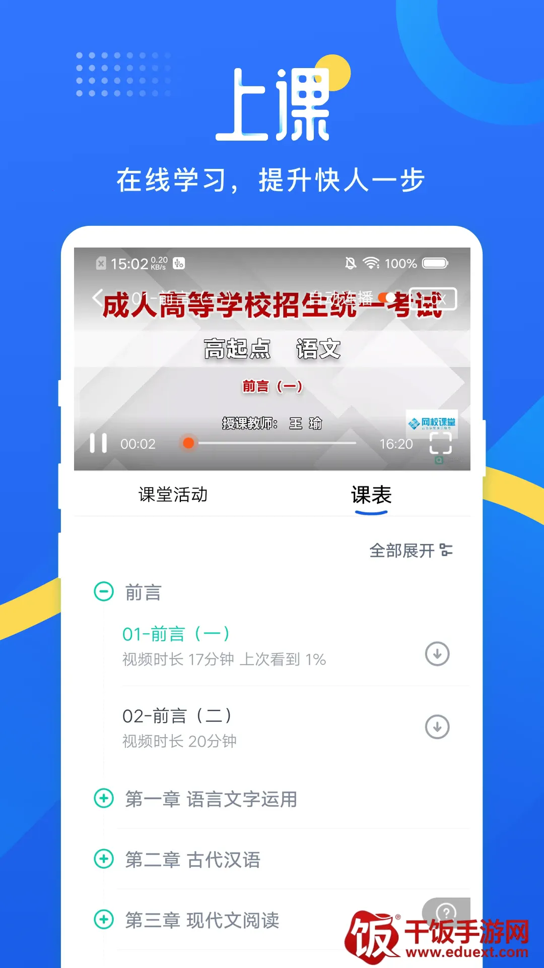 3、章节课表清晰:课程目录按章按节展开,学习进度一目了然,支持从上次观看处继续播放,减少重复时间成本。