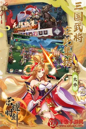 2、唯美画风体验:游戏画面精美,武将有专属绝美立绘,细节满满,还有酷炫技能特效,高度还原三国人物。像英雄武将英姿飒爽,倾国美女婀娜多姿。