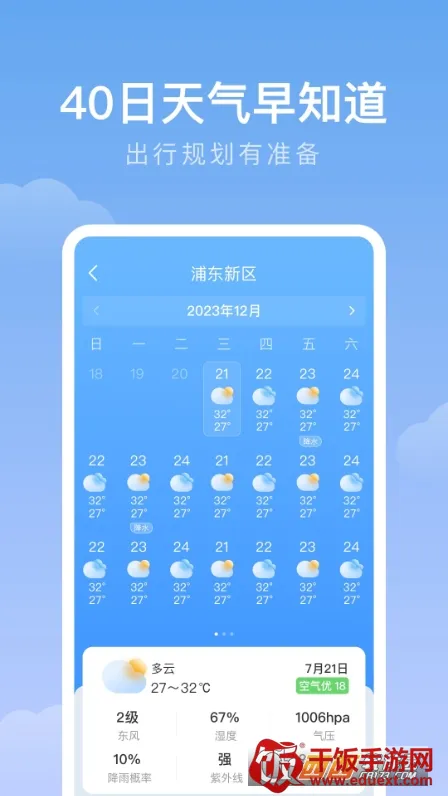 它采用多源数据融合预报,精准度高,涵盖多种气象指标。动态天气可视化,直观呈现雨雪雷电等。智能极端天气预警,保障安全。多城管理便捷切换,添加方式多样。还整合了空气质量、花粉浓度等生活与环境相关指标,为穿衣、行程等带来便利。
