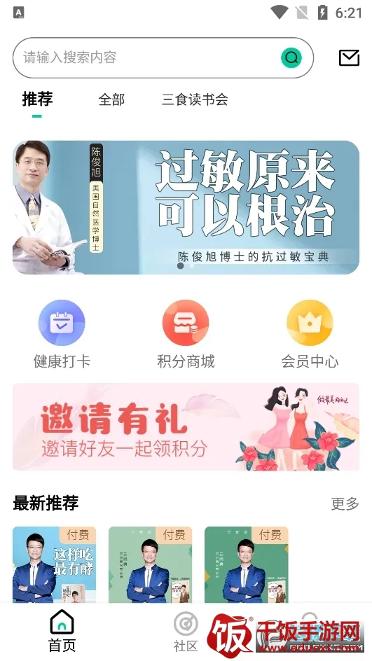 三食读书会由媒体人莎莎于2019年在上海创立,是中国专注健康教育的平台。这里汇聚众多优秀专家,能随时自由分享互动。有海量健康知识书籍且全部免费,可按需阅读或关键字查找。线上课程丰富,专业人员及时提供内容。每周固定更新3 - 4篇有前沿性的健康新知文章,均有论文支撑且经团队亲测有效。还提供免费体检报告解读,资深营养师团队教做深度体检,结合饮食与体检助用户掌握健康,提升健康素养。