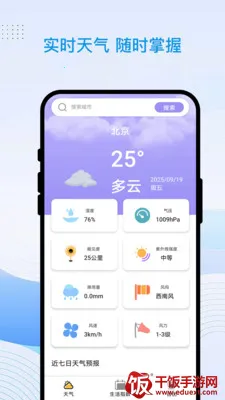 它可以即时定位你当前位置并获取准确天气数据,还能提供未来7天甚至更长时间的天气走势。内置的生活小贴士,像穿衣、洗车、旅行、运动等指数,能为你的日常生活提供参考。你还能同时关注多个城市的天气,随时了解亲友所在地的天气变化。而且它会根据实时天气自动切换背景图,界面美观又实用。所有数据都来源于权威气象机构,保障预报的准确度,还会及时推送天气预警,让你提前防范风险,出行和日常决策更安心。