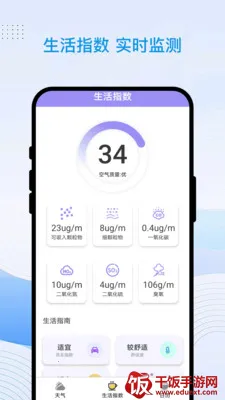 2.点击下方的【生活指数】,有着详细的空气质量与生活指数信息,让用户更好安排出行活动。