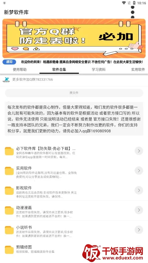 新梦软件库是一款资源下载平台,汇集了各种软件合集资源,包含学习资料、影视娱乐、漫画小说、剪辑修图等,还有各种破解游戏资源可直接下载,满足大家的需求。