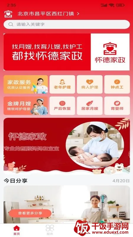 怀德家政2026下载安装后,可享专业家政上门服务。多种服务类型随心选,认证人员在线接单。有清晰服务日历,能追踪进程、透明计价。让你便捷预约下单,轻松畅享品质生活。
