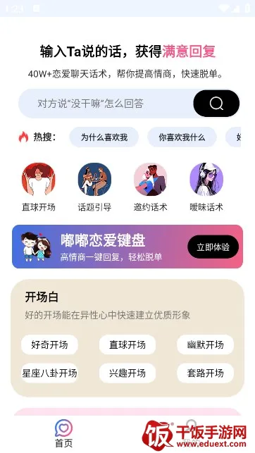 2. 提升情商助聊天:学习各种恋爱聊天技巧,可提高恋爱聊天情商,让与异性聊天更轻松愉悦、智慧有趣。