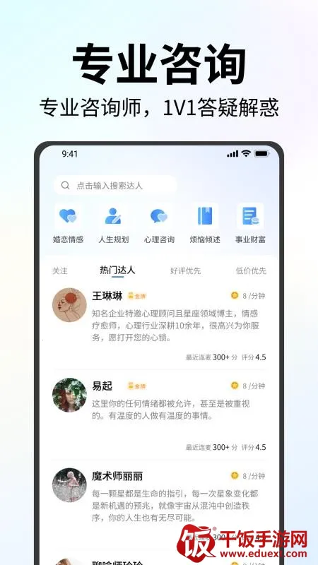 2. 多板块解决多样问题:除心理咨询板块外,还设有婚恋情感、人生规划、烦恼倾诉等板块,可解决用户诸多问题,是在线情感树洞。