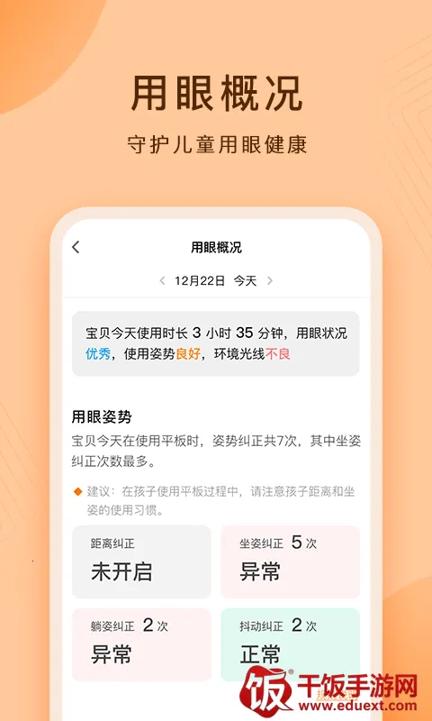 1. 用眼习惯全掌握:能清晰了解孩子用眼习惯、姿势及环境光线,提供科学使用环境。
