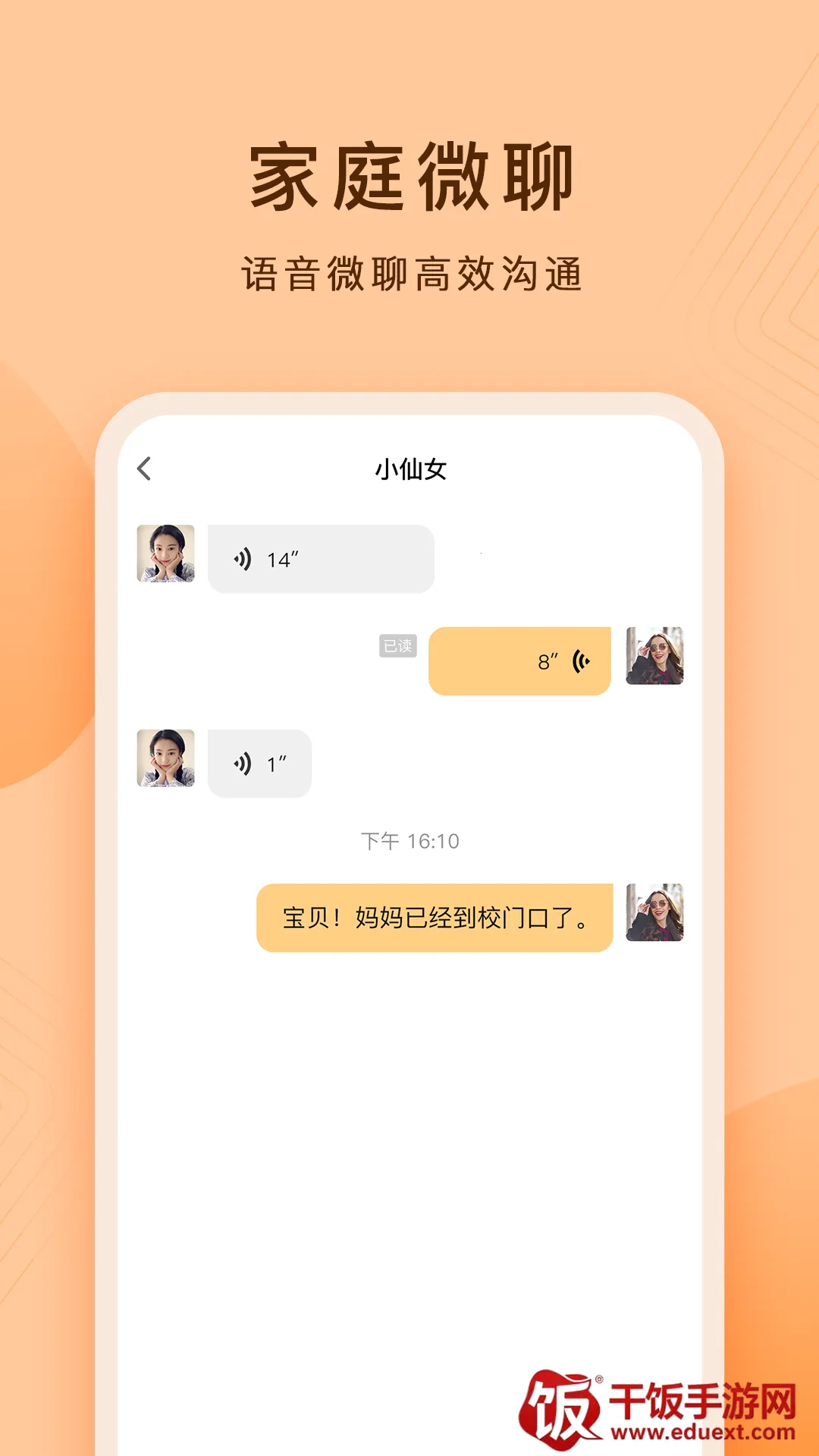 3. 沟通轻松又多样:微聊功能让家长与孩子沟通更便捷,文字、语音、图片、视频一应俱全。