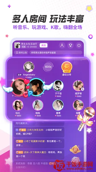 2. 语音功能丰富多样,可进行游戏开黑交友组CP、音乐说唱约战、聊天相亲等,满足多种社交需求。