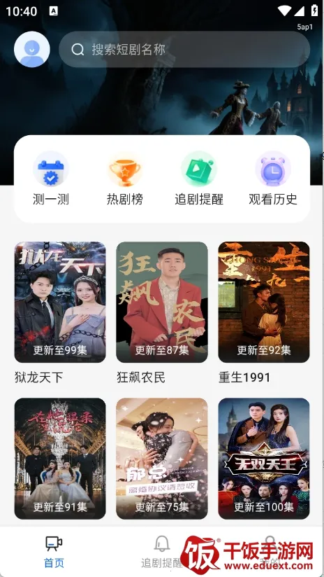 2.来到首页页面,可以看到很多的短剧资源类型。