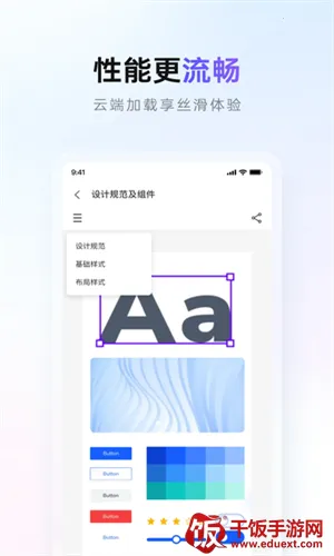 2、智能操作效率高,自带组件变体、自动布局等专业设计工具,支持UI/UX设计和原型播放,一体化完成高保真产品设计,快速上手专业技能。