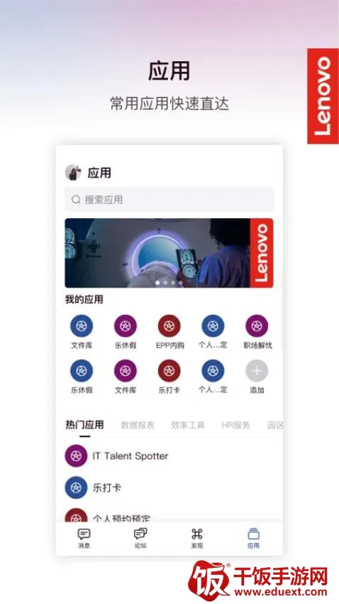 乐聊MyHub是款超棒的移动办公软件。它功能超丰富,能满足多样办公需求。在消息中心,能轻松查看和回复专属乐聊信息。移动办公功能强大,随时随地可办公。社区论坛能让你在线探讨热帖。企业发现板块可阅读企业资讯、参与圈子。常用应用展示了热门办公应用供选择。