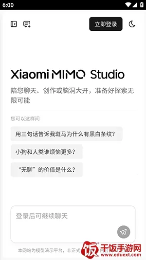 小米Mimo是一款超棒的AI助手平台。它能帮你轻松管理家里的智能设备,动动嘴或发条指令,就能控制小米旗下各类智能设备,实现智能家居一句话玩转。无论是写周报、规划旅行、翻译还是写代码,它都能搞定。操作很简便,能快速完成账号登录和个人信息设置。