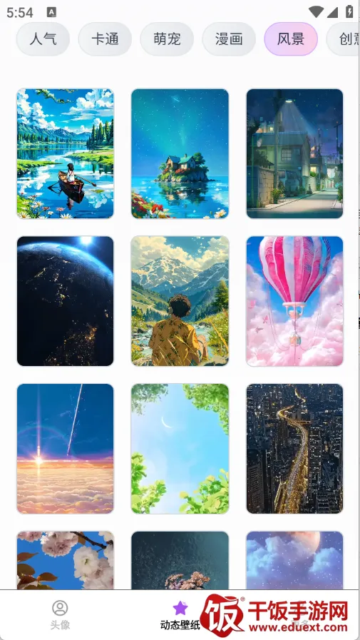 1. 壁纸资源超丰富,涵盖静态与动态,类型多样,从二次元风景到创意动效等题材一应俱全,满足各种需求。