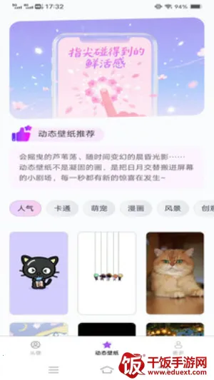 使用起来超方便。下载安装后打开软件,点击下方壁纸,能选择喜欢的分类浏览列表。找到目标壁纸点击进入预览页面,就能选择下载或者直接设为壁纸,一键更换,轻松打造独特手机风格。它还有智能推荐功能,根据你的浏览习惯推送可能喜欢的壁纸,提高找壁纸效率。而且分类清晰,支持搜索,能快速定位想要的壁纸。所有壁纸资源免费,更新速度快,总能让你找到最新热门的。部分高清动态壁纸在低性能设备上可能略显卡顿,但总体来说,非常值得一试,能让你的手机瞬间焕然一新。