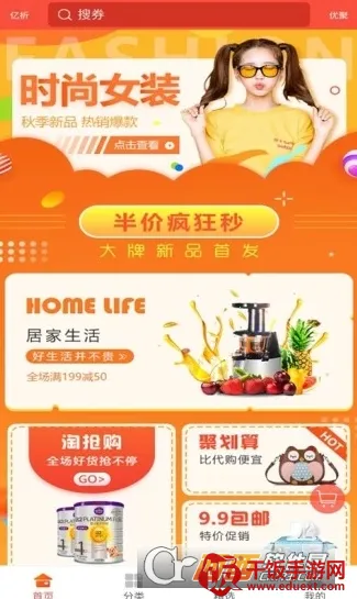 亿折优聚核心特色丰富多样。海量商品任你选,涵盖全网电商优质低价好物。能领券获返点,享受折上折优惠,先领券再下单,轻松低价购物。设有九块九包邮专区,每日更新数百款,用券后超划算。支持按类型详细分类,精准定位所需品类,节省选购时间。分享商品链接就能赚推广佣金,一键转发至朋友圈,推广便利。还有每日神券、新人好礼、劲爆促销等活动,全年优惠不停,购物轻松又愉快。