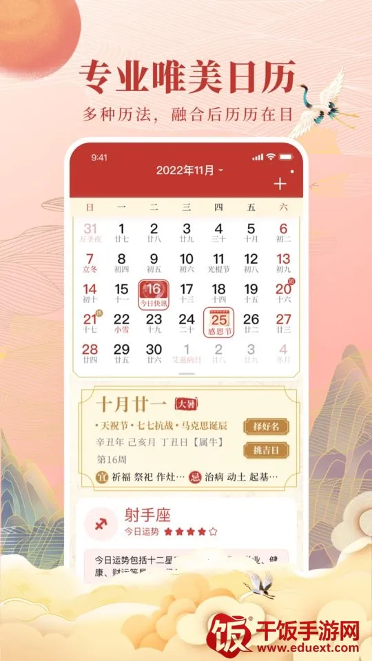 想知道全民万年历黄道吉日相关信息?全民万年历软件就能满足你!它集合了农历阳历黄历以及天气等多种功能,是你生活的最佳小助手。能帮你轻松查询不同类型的生活信息,系统按功能简单分类,新历、农历、黄历一应俱全,方便你查询各类日历情况。出行前,通过它查看气象和相关内容,提前做好出行规划。软件还有很多特色,比如智能出手提供实时温度和体感温度,助你按温度选穿衣方式;检测空气质量并实时更新数据。它还能创建个性化日程记录并提醒。画面有国风元素,简约传统,气候变化和天气因素及时提醒,操作超方便。有了它,出行计划、气象信息查找都不在话下,让你的生活更便捷精彩!