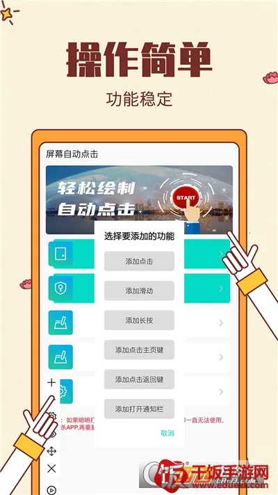 安全稳定可靠:经过安全测试,不读取敏感权限,不植入广告与后台服务,采用低功耗运行机制,后台持续工作不卡顿不闪退,保障隐私与系统纯净,点击动作稳定。