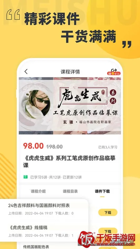 3. 丰富课程资源:提供海量学习课程,能让用户自由选择需要学习的内容,优质课程为大家提供专业学习体验,无论是艺考生还是美术爱好者都能满足需求。