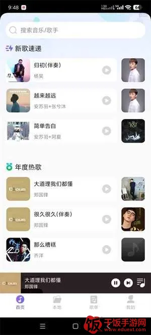 3. 便捷操作体验佳:界面设计简洁,一目了然。支持一键扫描本地音乐整理私人歌单,输入歌名、歌手或歌词片段可快速定位心仪音乐,播放模式多样,适应各种听歌场景。