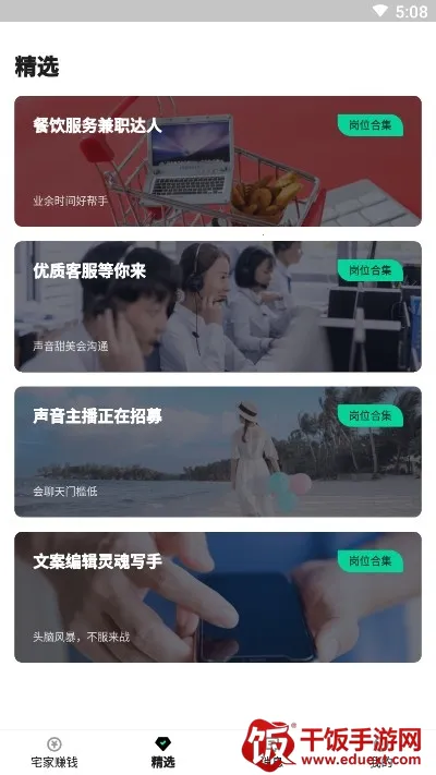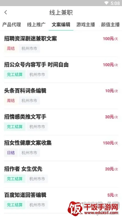 2. 海量兼职,选择多样:日更新岗位1000,活跃兼职岗位10万,海量兼职任你选。涵盖外卖骑手、便利店员、网店客服、餐厅服务员等常见岗位,还有信息标注、文案编辑、在家主播等新兴特色岗位,满足不同需求。
