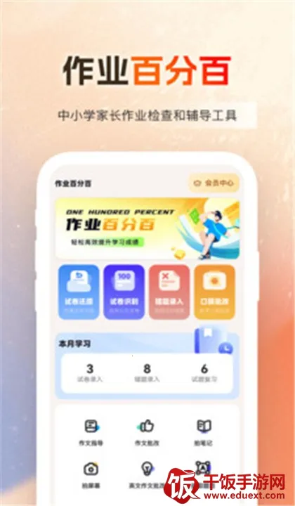 作业百分百是专为中小学生打造的学习软件。拍照上传作业可判对错、入错题本,有海量题目供练习,能记录学习情况。具备多种特色功能,操作简便,还能帮家长分析孩子学习,助力孩子制定复习计划。