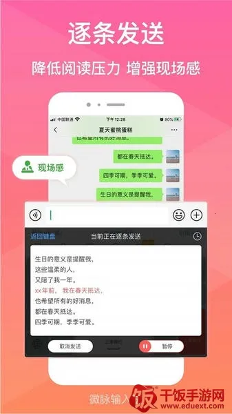 微脉输入法是一款微商专用手机输入法,支持九宫格和语音转文字输入,可设置微商常用语。有快捷常用语、花样字体等功能,能一键转发常用话题,特殊字符模板丰富。拥有超4500万微商用户,质量可靠。