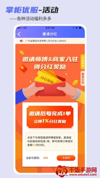 掌柜优服是一款超棒的平台!它是专业的SaaS服务平台,能提供智能家居安装维修测量及全国工程项目承接等服务。订单类型多样,涵盖智能门锁、窗帘、晾衣架等。提现快,新会员注册有大礼包,完成任务5天内就能收到钱包。师傅可免费报价,根据订单信息和距离自由抢单,保证金大师还有优先抢单特权。它的优势明显,全国合作商众多,订单量超千万。手机版接单速度快,一键下单师傅快速响应。服务好,累计安装服务300万次,好评率高达99.2%。覆盖面广,全国超10万专业师傅,覆盖34个省市。不管是家电维修安装,还是马桶下水道堵塞等问题都能解决。总之,掌柜优服为师傅提供了便捷高效的接单渠道,也能让客户享受到优质的上门服务,非常值得推荐!
