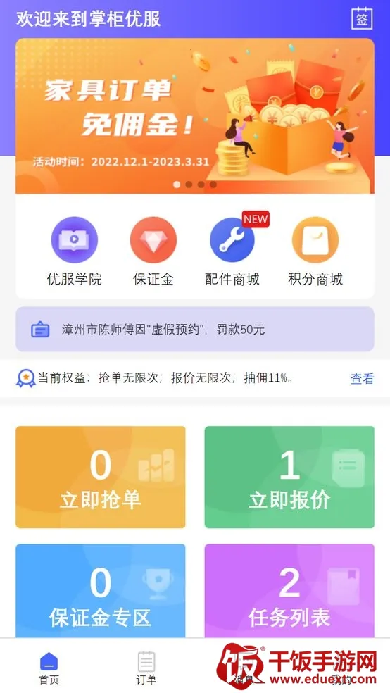 掌柜优服是专业SaaS服务平台,为师傅提供线上接单。有多种订单类型,支持即时报价抢单,任务列表清晰,提现快。全国合作商众多,订单量大,能解决智能家居等安装维修及全国工程项目承接问题,服务好、覆盖面广。