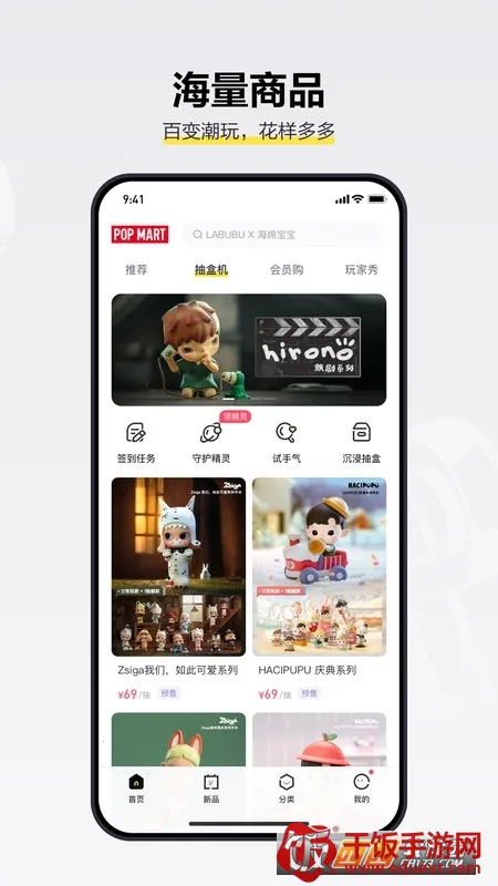 1. 海量正品潮玩:涵盖艺术设计潮流等多元素融合的IP商品,满足潮流玩具爱好者多样需求。