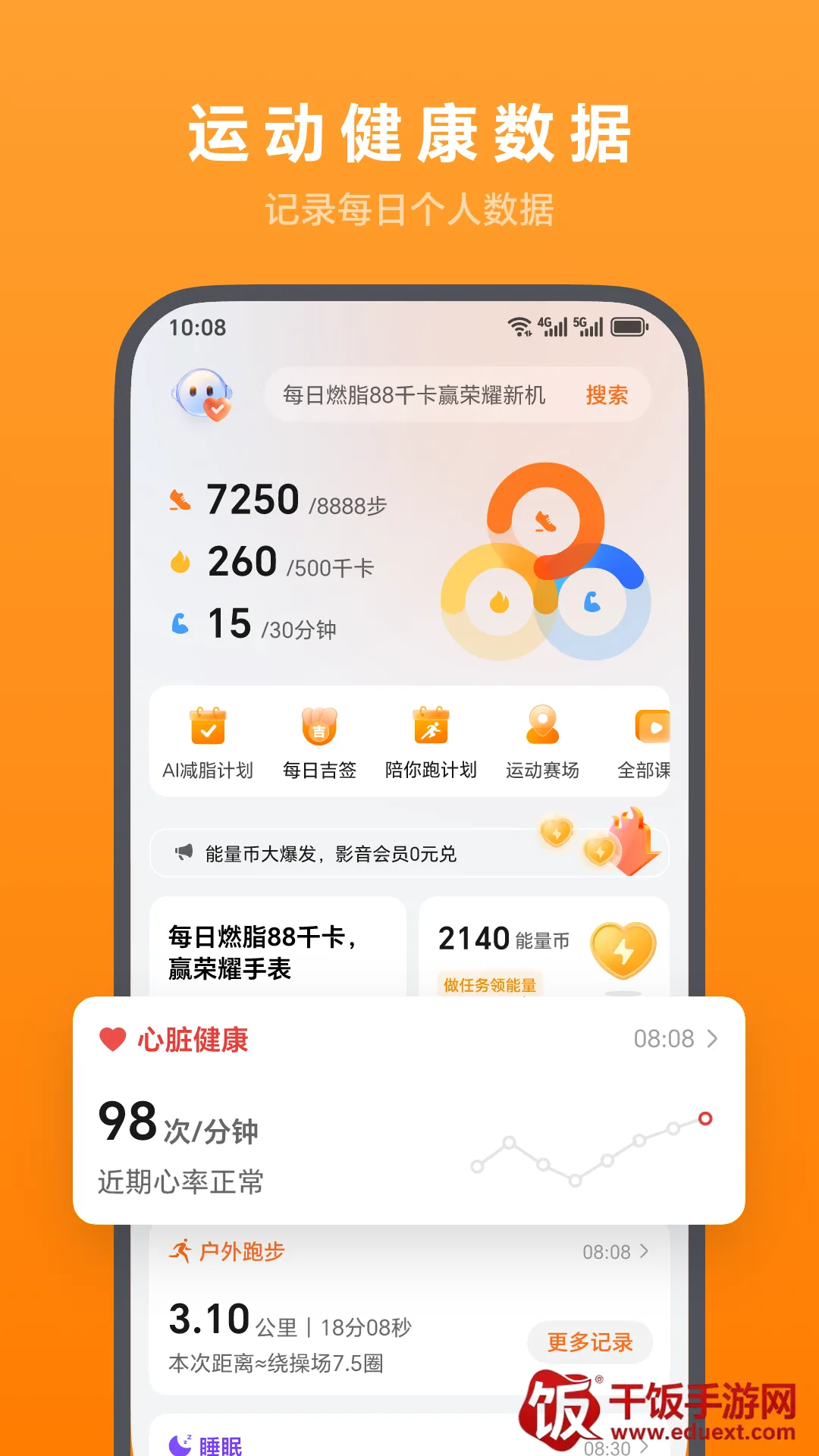 荣耀运动健康是一款出色的运动与健康管理应用。它与荣耀智能穿戴设备无缝连接,能提供精准数据分析。支持多种运动模式,实时监测健康指标。拥有智能提醒功能,助你养成健康习惯,还给出科学运动指导。数据统计清晰,运动时间轴让安排更合理。睡眠监测可了解睡眠周期,改善睡眠质量。血氧、心率监测守护健康。提供个性化跑步计划,还有丰富运动课程资源,让运动更有趣,全方位助力健康生活管理。