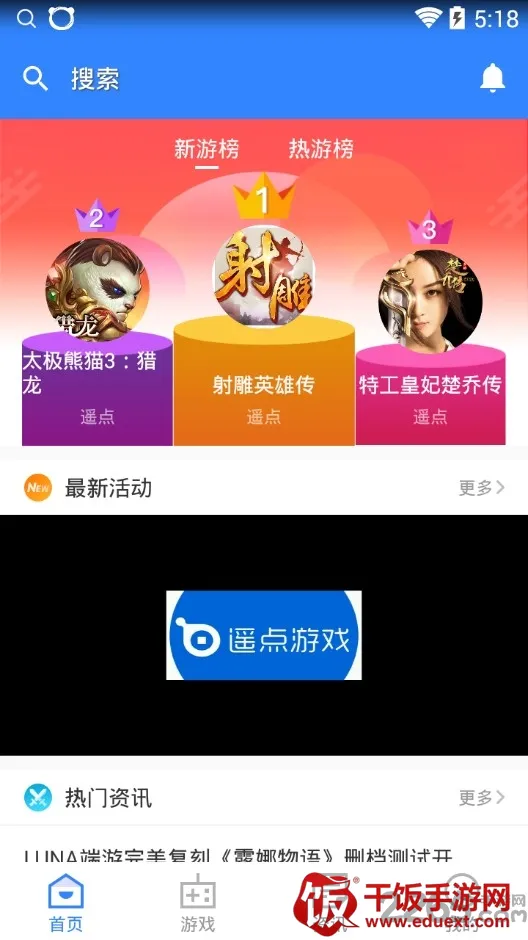 遥点是一款全新手游平台,有大量游戏,种类丰富。充值流程简化,覆盖上千款热门手游,提供低至四折优惠,首创终生折扣。还有H5游戏专区等特色,能帮玩家轻松玩好游戏,实现娱乐与性价比平衡。