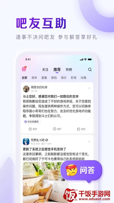 1、拥有丰富的兴趣吧。如果你爱种田,这里有2000多的花吧、多肉吧等,等你来参与养殖经验的讨论;喜欢旅行,旅行吧、背包客吧等1700多家酒吧等着你一起出发;喜欢休闲活动,摄影吧、钓鱼吧等400多家酒吧会让你认识很多伙伴。