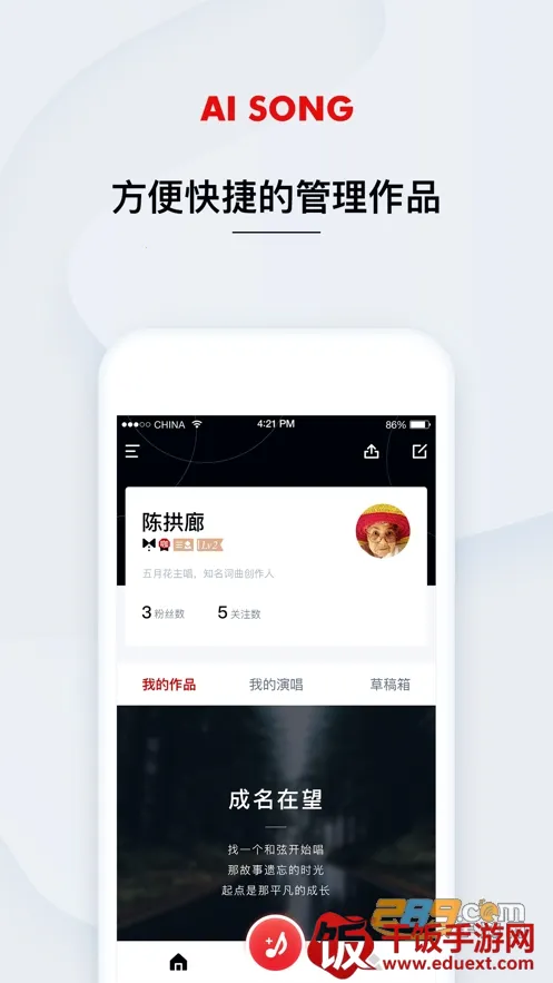 艾颂音乐2025最新版本核心特色满满。它拥有强大的智能创作功能,能鉴别输入信息,提供词语联想辅助作词,还能智能编曲、作曲。看谱演译与哼曲谱子功能也很出色,可将用户提交的谱子转换编辑,识别哼曲内容并转化格式。海量正版音乐随心听,智能语音搜歌超便捷。界面简洁操作流畅,音效调节强大,支持歌词同步,给用户带来极致音乐体验,无论是创作还是欣赏都能满足需求。