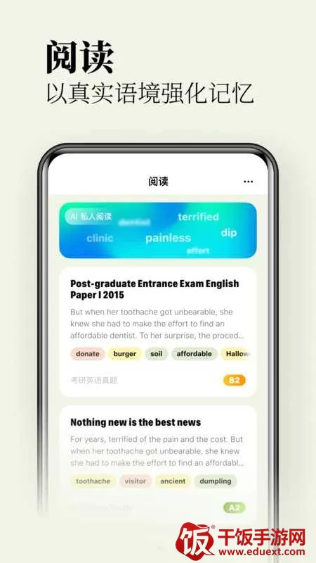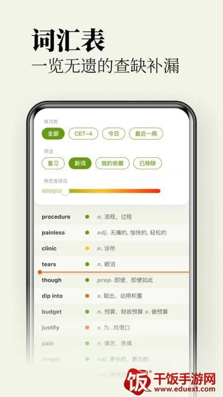 4. 科学记忆,轻松掌握:通过科学记忆法,结合多样化练习方式,如智能判断单词熟悉度、实时匹配最佳阅读材料等,助力用户轻松掌握单词。