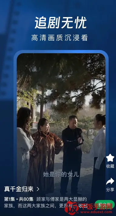 3、观剧体验优质:采用竖屏的沉浸式播放设计,单手轻滑即可切换内容;支持多种清晰度灵活切换,适应不同网络环境,观影更顺畅。