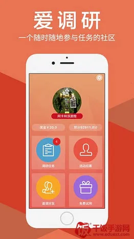 想知道爱调研一天能赚多少?那就来了解一下这款网络调研平台吧!爱调研安卓版汇聚了企业发放的问卷,答问卷就能赚钱。它的功能超实用,注册简单,填完资料就能接单,完善资料还能获更多任务。任务没时间限制,随时能做,完成就有收益。邀请好友注册完成任务,你能得他们收益的10%。平台每天发布大量任务,动动手指就能完成赚奖励。软件特色也很棒,信用越高奖励越多,完善信息精准获任务,方便快捷兑换现金和奖品。版本亮点丰富,能接任务赚积分、自动记录订单、查积分明细、任务时刻更新、每日签到得积分,还能兑换大额红包。操作简单效率高,适合学生、白领、家庭主妇等打工赚钱,快来下载体验,看看在这一天能赚多少吧!